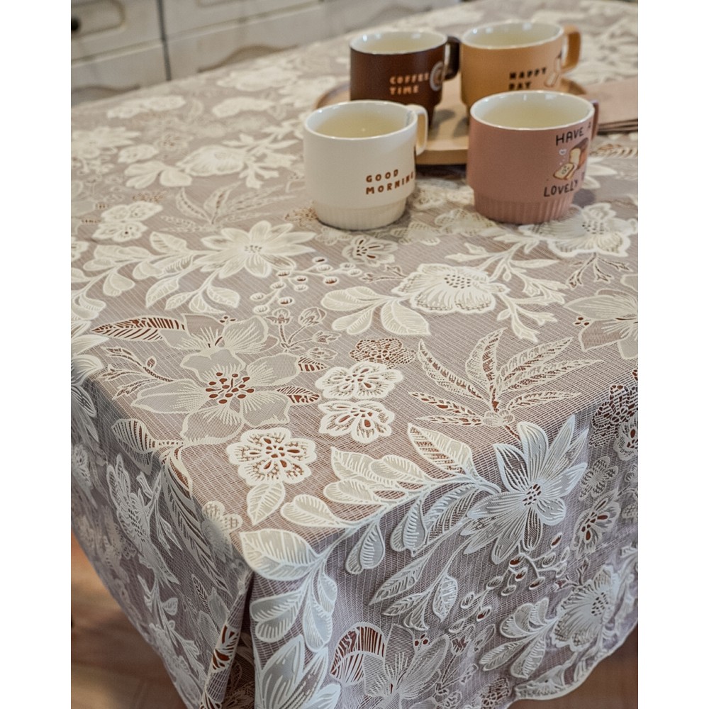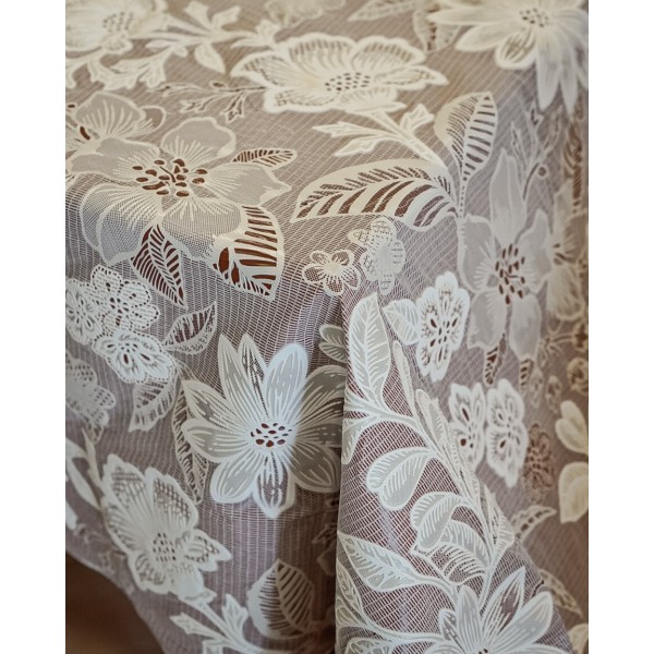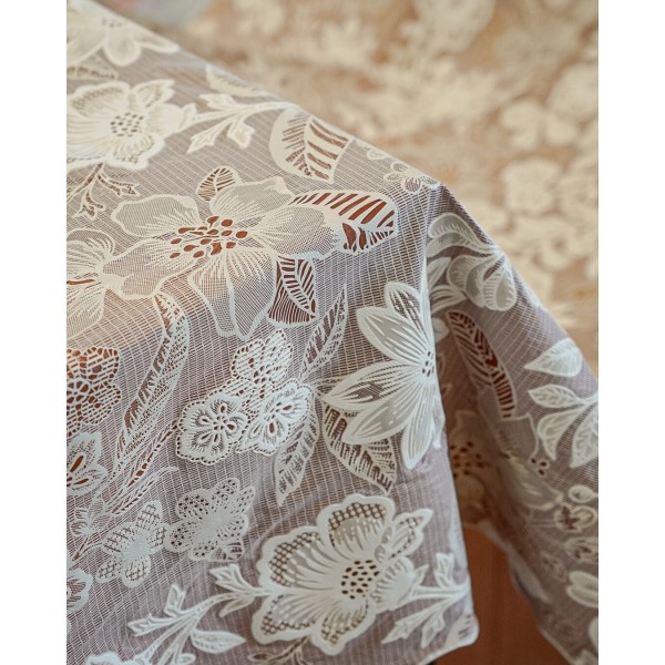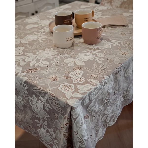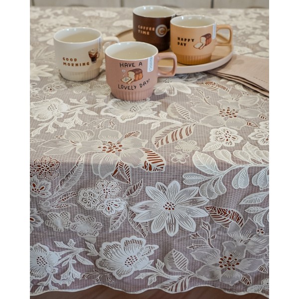 Tokyo Lace Tovagliato a Metraggio Effetto Merletto Doppio Fondo Marrone Larghezza 137 Cm