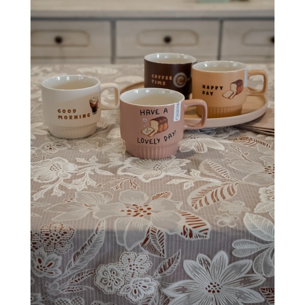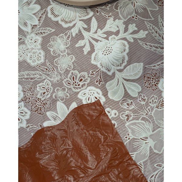 Tovagliato in pvc, Larghezza 137 cm, lunghezza la scegli tu. Sottofondo compatto con base marrone che garantisce maggiore resistenza e durata. Facile da pulire, ideale sia per uso quotidiano che per occasioni speciali.