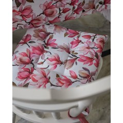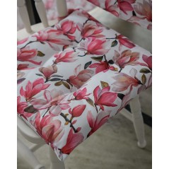 Design coordinato con la tovaglia magnolia per una mise en place armoniosa. Morbida imbottitura che assicura una seduta confortevole anche a lungo. Laccetti laterali per fissarli facilmente alla sedia ed evitare spostamenti.