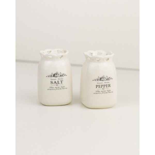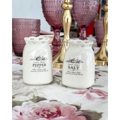Sale e Pepe Set in Ceramica Shabby Crema con scritta