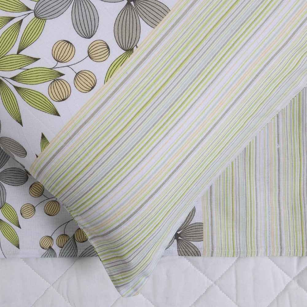 Completo Lenzuola Lilian Fiori e Fasce Biancaluna 100% Cotone