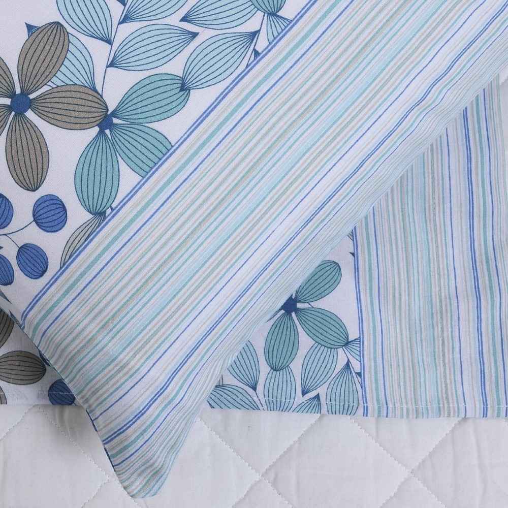 Completo Lenzuola Lilian Fiori e Fasce Biancaluna 100% Cotone