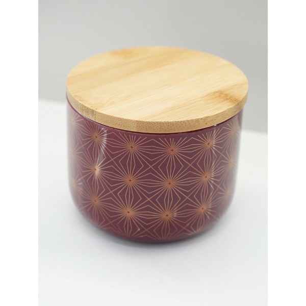 Barattolo Moderno in Ceramica Stile Geometrico con Coperchio in Legno e dettagli in oro
